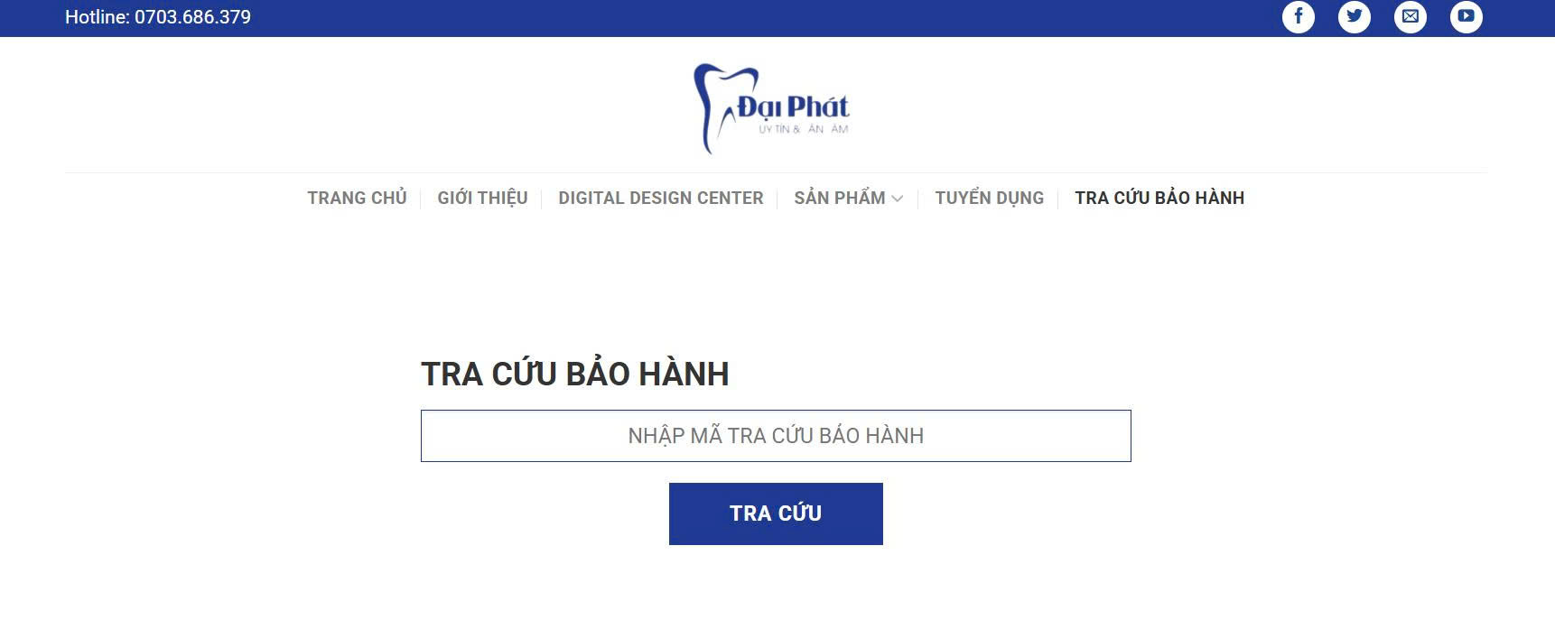 Website của Đại Phát không chỉ là nơi trưng bày sản phẩm mà còn là cầu nối giữa khách hàng và công nghệ nha khoa tiên tiến. Giao diện thân thiện, dễ theo dõi từng dòng sản phẩm, truy xuất bảo hành và hỗ trợ khách hàng. Mỗi sản phẩm đều được mô tả chi tiết, hình ảnh minh họa sắc nét, giúp khách hàng hiểu rõ hơn về lựa chọn của mình. Đặc biệt, Đại Phát đề cao sự minh bạch trong dịch vụ — từ chất liệu sử dụng đến cam kết độ bền và chính sách bảo hành — nhằm xây dựng lòng tin và uy tín lâu dài trong lĩnh vực nha khoa thẩm mỹ.