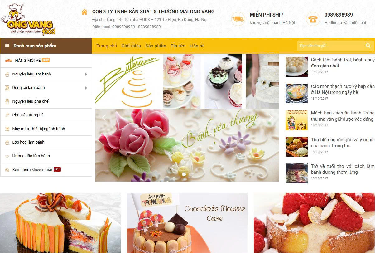 Điểm nổi bật đầu tiên của mẫu giao diện website Cake chính là thiết kế hiện đại và chuyên nghiệp. Giao diện được xây dựng với màu sắc hài hòa, bố cục khoa học, phù hợp với ngành hàng bánh kẹo và nguyên liệu làm bánh.