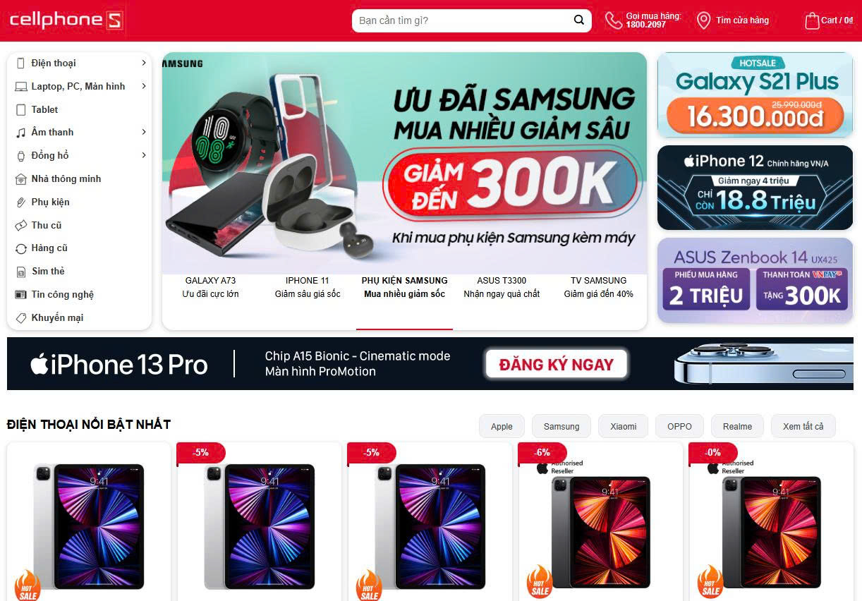 Điểm nổi bật nhất của Mẫu giao diện website Cellphones là thiết kế sang trọng, trực quan và phù hợp với ngành hàng công nghệ: