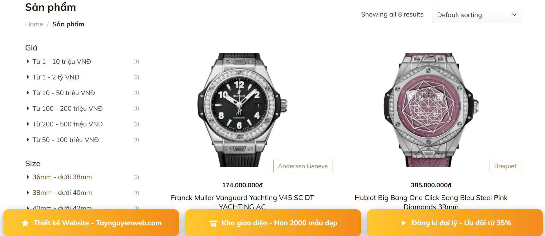 Danh mục sản phẩm đa dạng: dễ dàng phân loại theo thương hiệu, giới tính, phong cách hoặc mức giá.